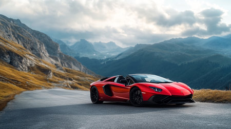 A striking close-up of a sleek red exotic car parked on an empty urban street, showcasing its modern design and dramatic lighting for an artistic vibe.