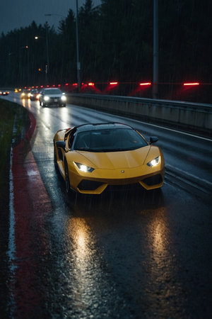 Feel the thrill of the open road with this sleek sports car racing along the highway, embodying speed, power, and precision.