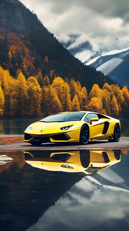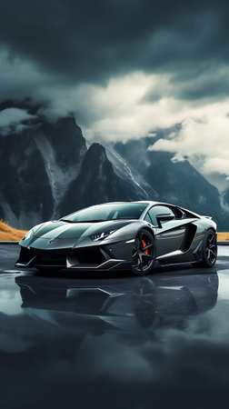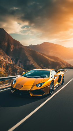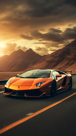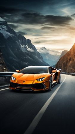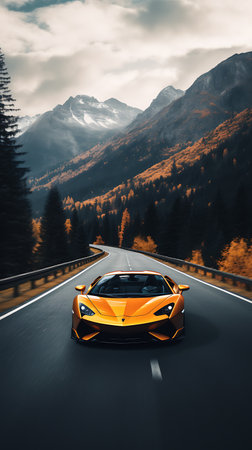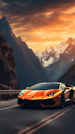 Sport car on the road with beautifull landscape mobile wallpaper.