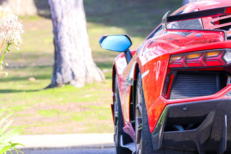 Los Angeles, JUL 24, 2021 - Luxury Lamborghini car parked in the shopping mall