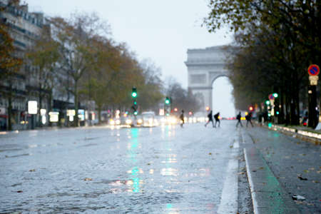 PARIS, FRANCE - October 30 View along the Champs Elysees street in Paris, France in the autumn The street is one of the most famous in the world