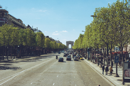FRANCE, PARIS, MAY, 20, 2014 - Car traffic on the avenues of Paris. Champs Elysees. Paris, France
