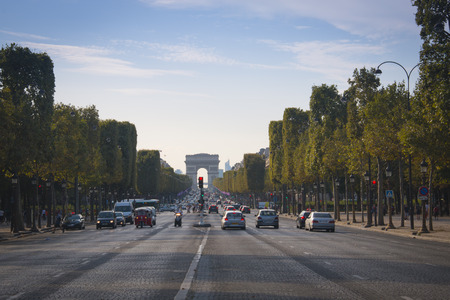 PARIS, FRANCE - SEPTEMBER 2016: View over the Champs Elysees, the most famour road in Paris, France with the Arc de Triomphe in the background