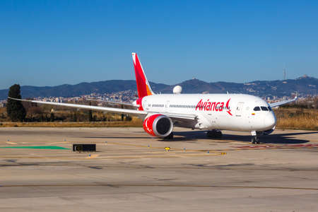 Barcelona, Spain - February 21, 2022: Avianca Boeing 787-8 Dreamliner airplane at Barcelona airport (BCN) in Spain.