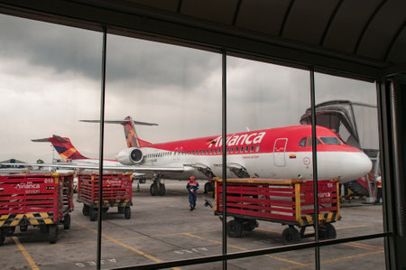 Avianca airline plane parked at the boarding gate of El Dorado airport in the capital of Colombia. Bogotá Colombia August 28, 2008