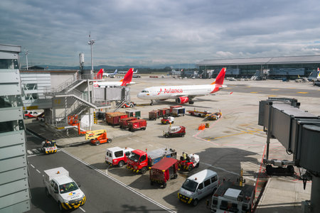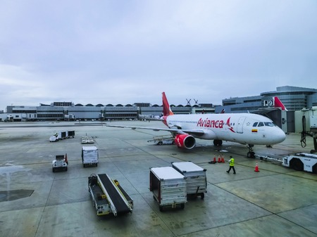 Avianca airline at El Dorado airport where they have their main base of operations. Bogota Colombia. February 8, 2018.