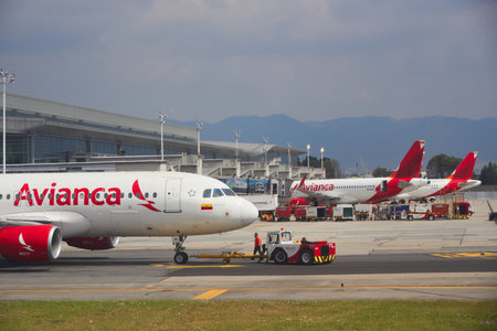 The El Dorado airport, where Avianca is located, the largest Colombian air fleet. This airline is one of the oldest in the world. Bogota Colombia. January 2, 2019