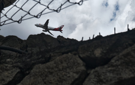 Kuala Lumpur, Malaysia, 17th Feb 2017, Air Asia aircraft on landing approach at the airport