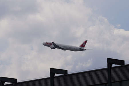 ZURICH, SWITZERLAND - CIRCA OCTOBER, 2018: a SWISS aircraft takes off from Zurich International Airport.