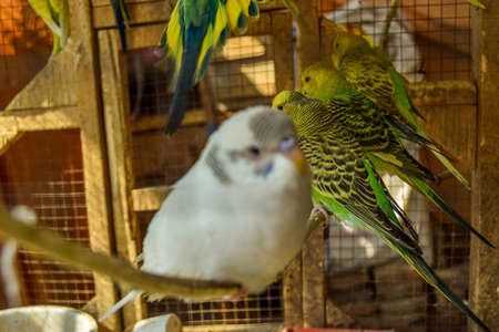 group of budgerigar in cage at giza zoo, egypt