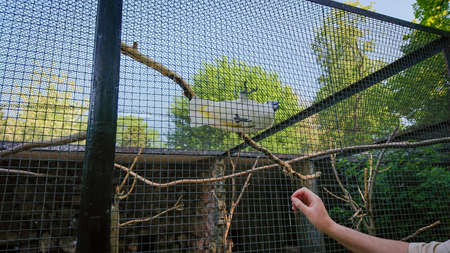 Cockatoos in the cage . Close up image of Cacadu Parrot . Bird Paw Details