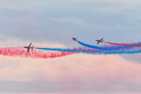 Gdynia, Poland - August 22, 2021: The Royal Air Force Aerobatic Team of the United Kingdom at the Aero Baltic show in Gdynia, Poland.