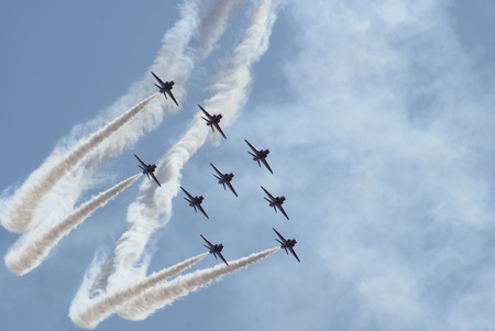 The Red Arrows RAF Airforce aerobatic, formation flying jet aeroplanes