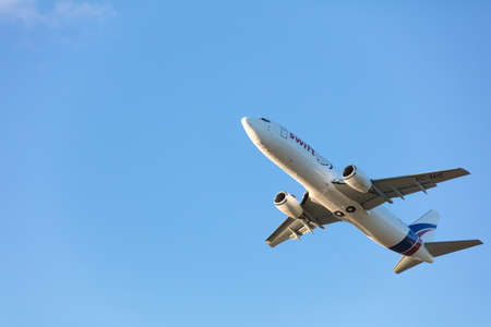 Tallinn, Estonia - July 5, 2017: Swift Air cargo plane takes off from Airport of Tallinn