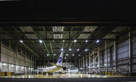Airplane hangar. Airline Russia. Collect aircraft. New aircraft. Official spotting at Pulkovo Airport, St. Petersburg Russia November 28, 2018