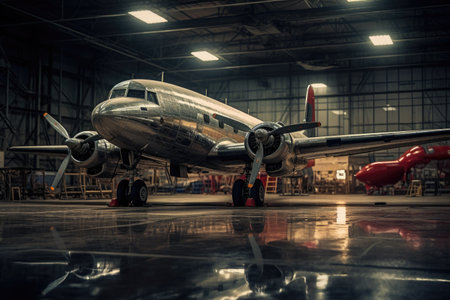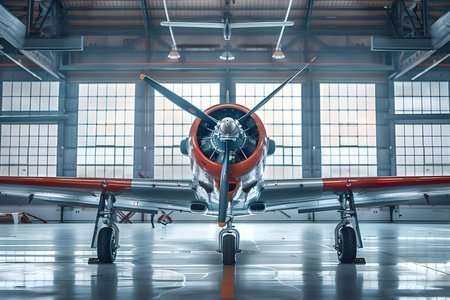 vintage airplane in airport, Aircraft in the hangar, Front view, AI Generated