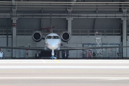 Airplane in the hangar of a modern airport. Passenger airplane.