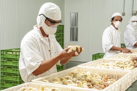 Chick inspection in poultry farm