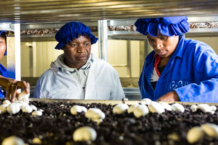 Johannesburg, South Africa - March 03 2-14: Inside a Commercial Mushroom Farm and packaging facility