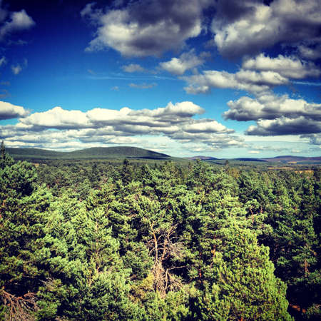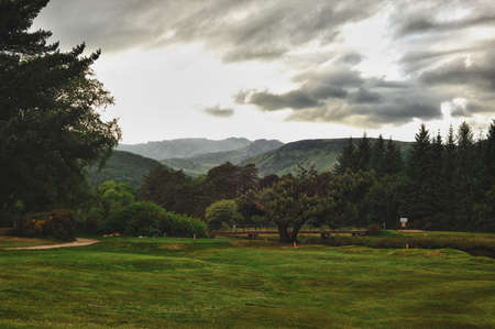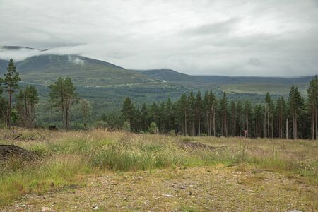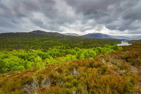 Picturesque landscape of a mountain forest with traditional nature of Scotland