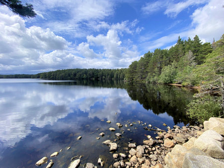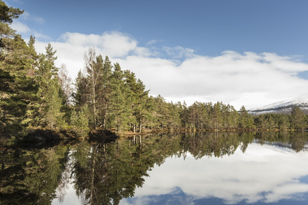 The beautiful Loch Morlich in Scotland, Cairngorm Mountains, United Kingdom
