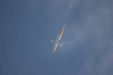 Nice, France - March 26 2019: Airbus A320-214 operated by Swiss Air passing over the city.