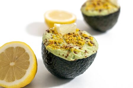 Fresh and tasty dessert of avocado pear sweet cream with lemon.