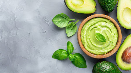 Experience the vibrant and fresh flavors of a creamy avocado dip featuring basil leaves, perfect for healthy snacks, parties, or light meals.