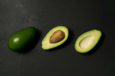 Fresh, raw avocado sliced on a black background