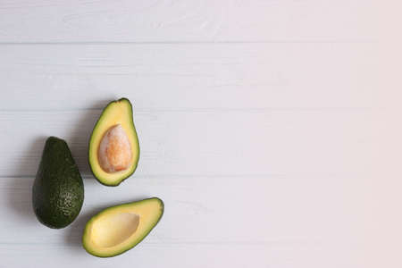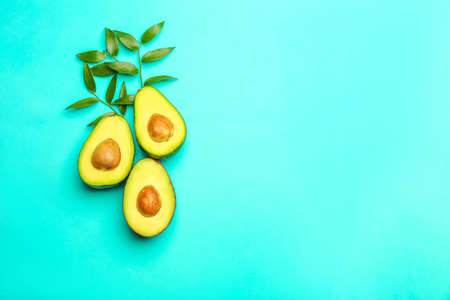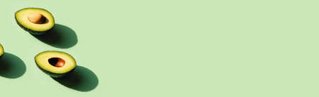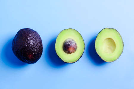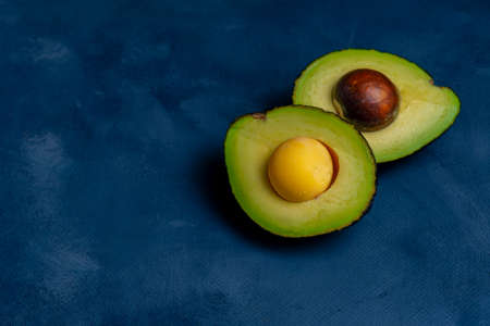 Fresh avocados cut in half. Fashion minimalism style photo