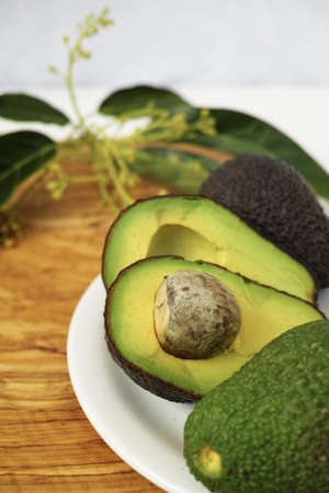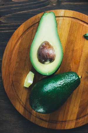 Haas avocado on a wooden board, natural products, selective focus