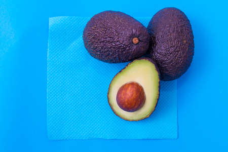 Fresh avocado on blue background, top view