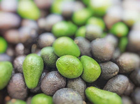 Avocado background. Fresh green avocado on a market stail. Food background.