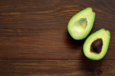avocado on the wooden background, place for text.