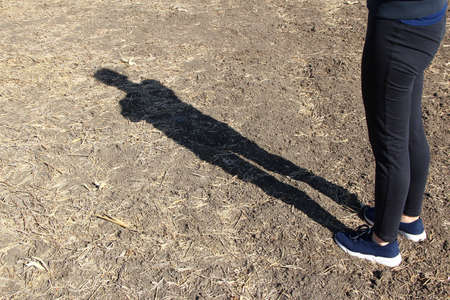 Woman legs and shadow on the agricultural field