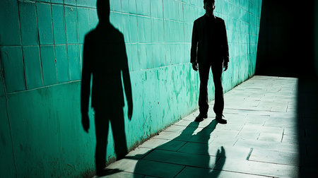 Shadow of a man standing on the wall with shadow of a man