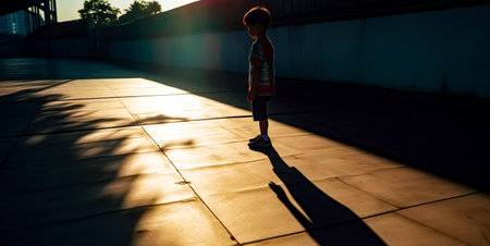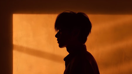 Silhouette of a boy in front of a wall with light