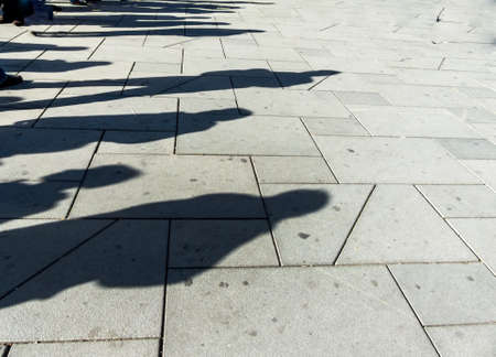 Silhouette of people on the pavement, men's shadow on the pavement