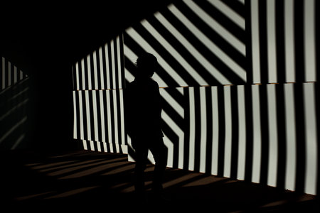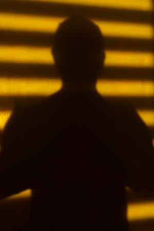 silhouette of man on warm striped background of shadow and hot light