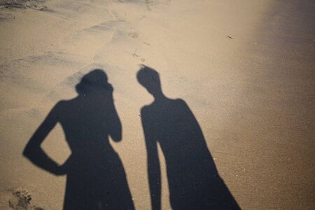 Two black shadows of girls on the beach sand