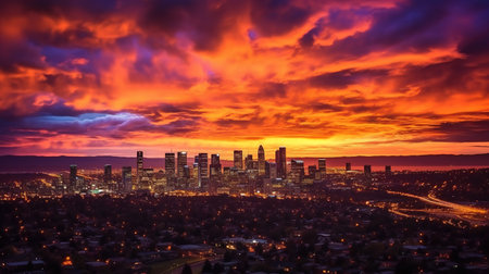 cityscapes at sunset. generative ai