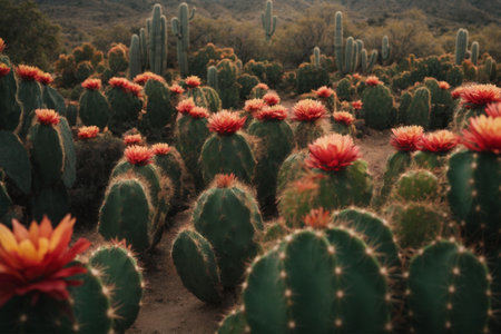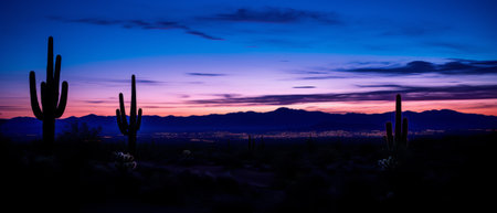 Silhouettes of cacti at sunset. Generative AI