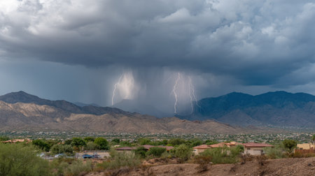 Thunderstorm over the city of Salta, Argentina, South America