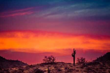 A Sunset over a Saguaro Cactus in the Sonoran Desert of Arizona.