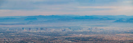 Aerial view of the famous strip skyline from Turtlehead peak trail at Las Vegas, Nevada