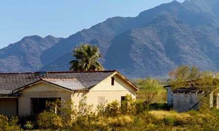 Desert farms with mountains