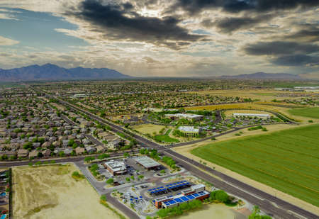 Aerial drone view of small town near mountains area a residential neighborhood with Avondale town Arizona USA