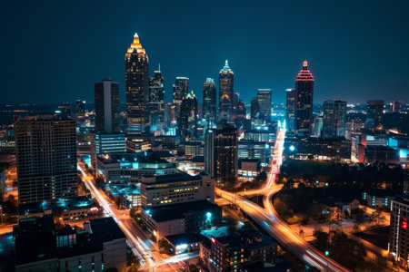 Atlanta skyline highlighted by neon lights Ai generated
