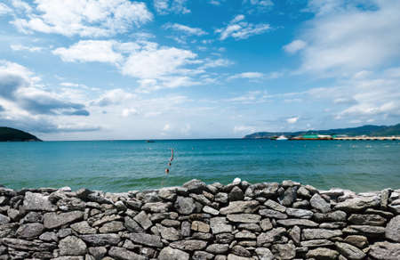Beautiful blue sky and green and natural scenery of the sea in Kitanagato Coast Quasi-National Park
