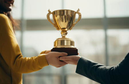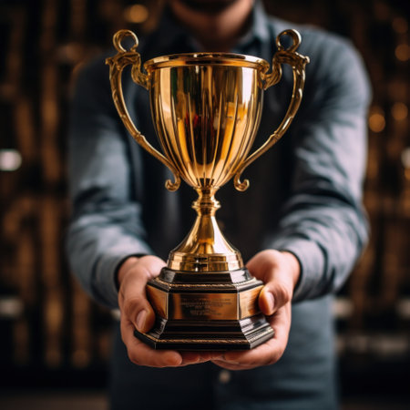 Hand of winner with a gold cup